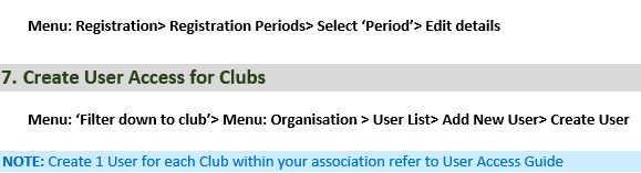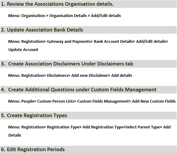 Season Set up check list will provide guidance when setting up an association for the upcoming season