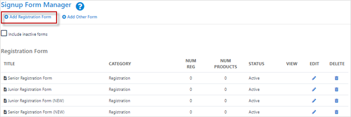 Clubs should create senior signup forms for their senior participants using FFA senior form Template.