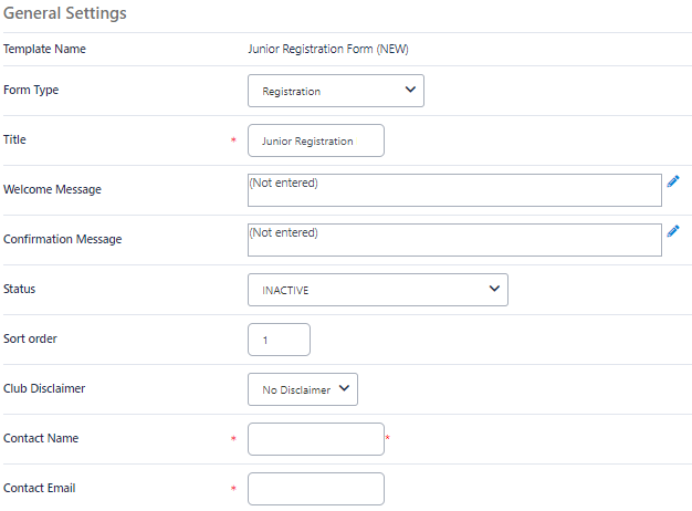 FFA will have a set of templates (senior & junior) that Organisations will be able to select as a base. The difference in forms will reflect the different information participants require as junior or seniors. i.e. Junior forms will capture more information compared to a senior player’s sign-up form