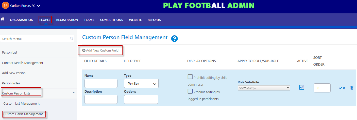 Additional questions clubs would like to ask to specific Participants will be included in on the Signup Form. The Additional questions will need to be created in 'Custom Field Management'.