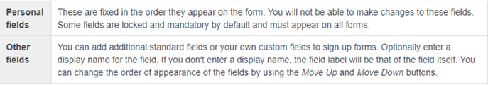 | Disclaimer | Governing bodies may have a predefined disclaimer that must be used. Some organisations will be able to create their own disclaimers. A disclaimer will contain the terms of use for your sign-up form and must be agreed to before the sign-up process can be completed. |