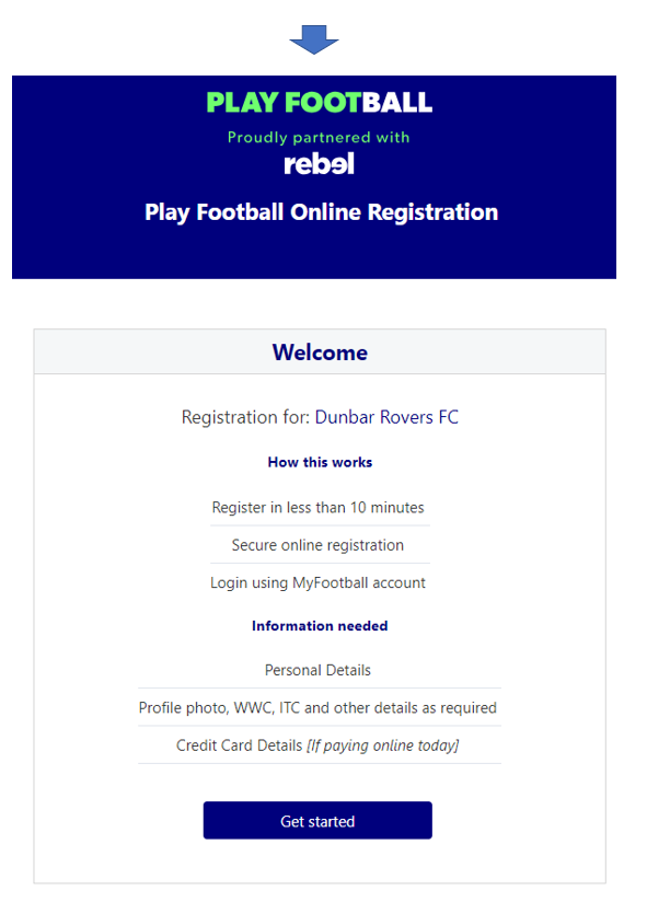 - Welcome to Play Football Online Registration, click on “Get Started”