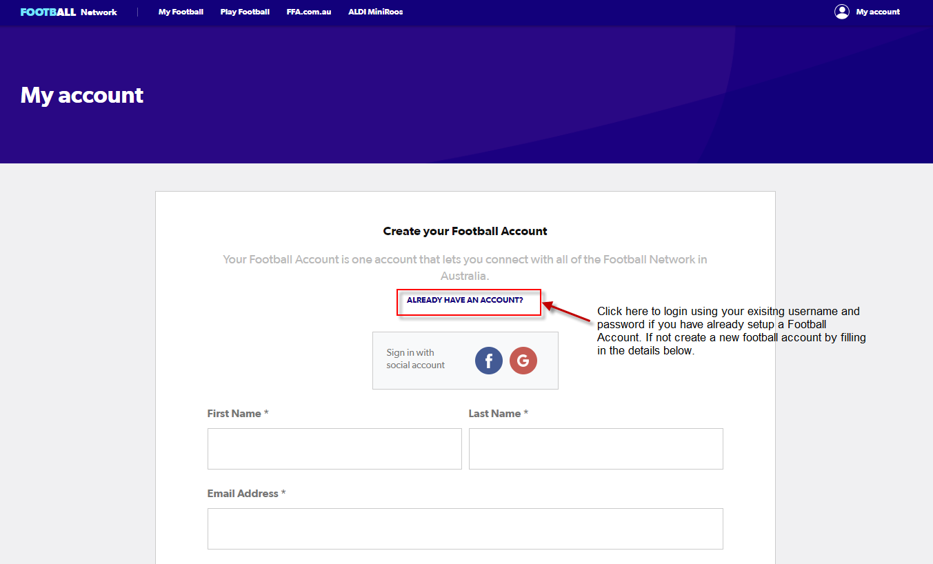 [!]The following steps are for participants who 'Already have an Account' (Football Account)