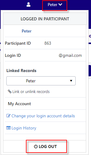 When you are finished with your participant portal activity click on your name on the top right of the screen and click on Log out