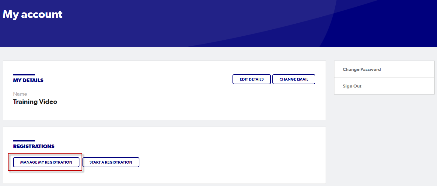 Select 'Manage my registration', this will direct you to your Participant portal. Your participant portal should look like this: