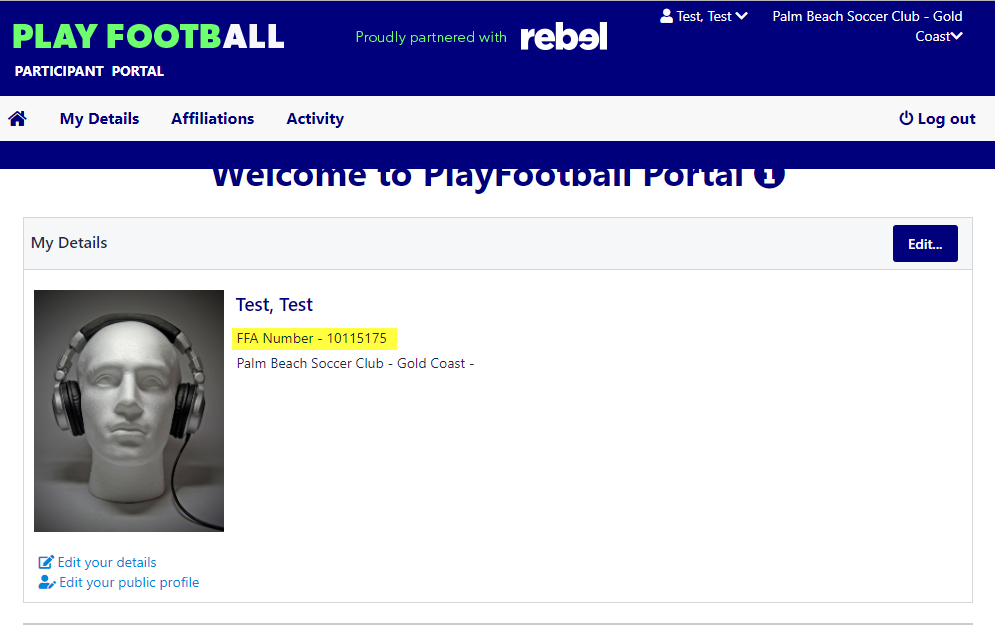Accessing you participant portal is done via your FOOTBALL ACCOUNT*