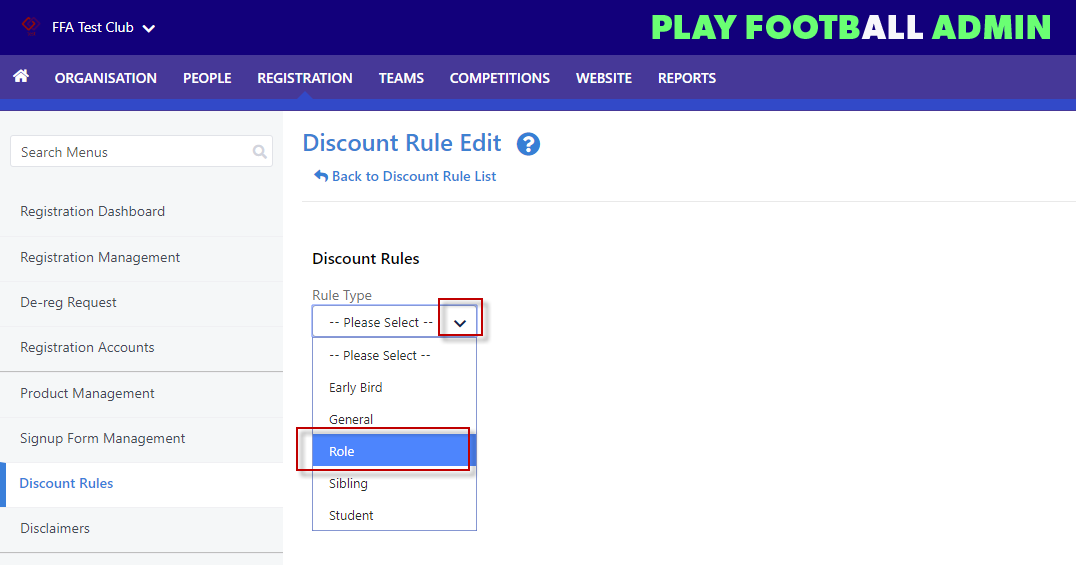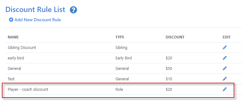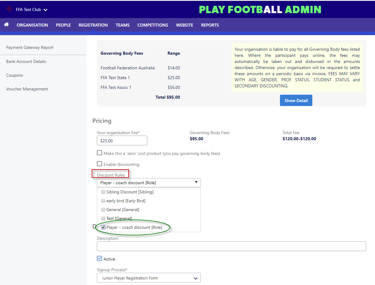 As a club you may want to offer a discount to your players who also perform another a role at your club such as coach, committee member or volunteer.