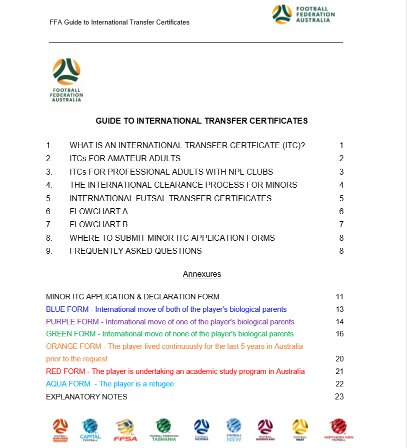 the international clearance process applies to any minor player, being a player aged 10 to 18 years (Minor) seeking to register to play football in Australia at any level. (further details available in attachment)