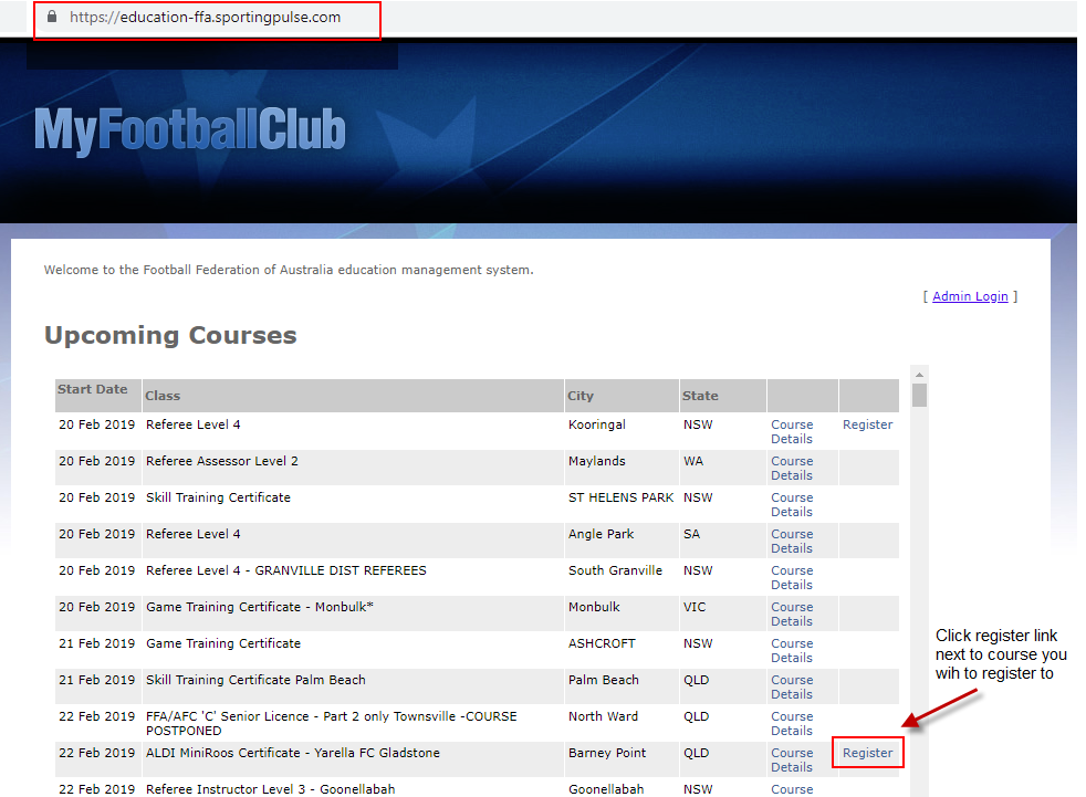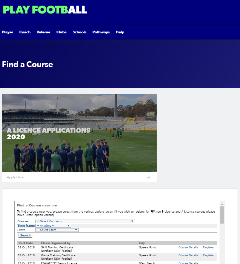 Login to the FFA Courses website using your FFA number and email address that you used for your football account