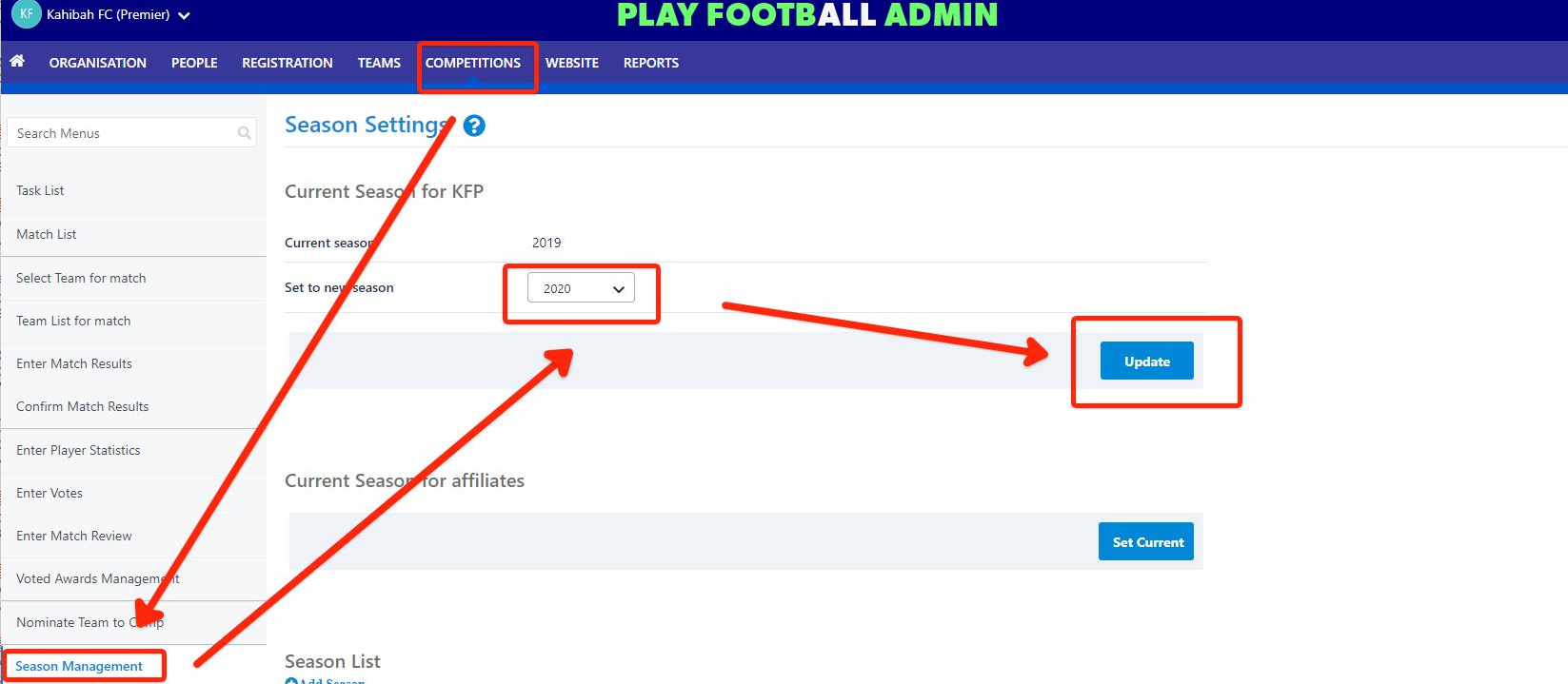 IMPORTANT: To migrate teams, users will need to update the default season record to 2020;