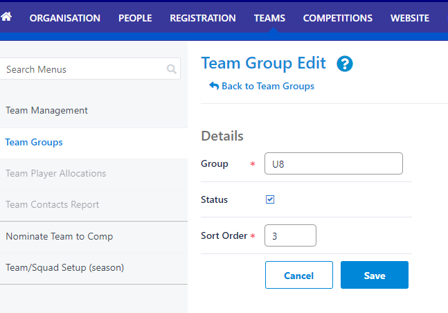 Tip: ‘Team Groups’ is the Age Group of a set of teams, in MyFootballClub this was called ‘Age Group’. Eg. If you have 3x U8s teams, your group would probably be U8