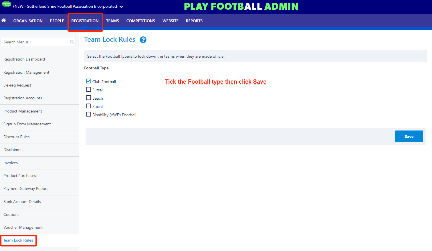 - Tick the Football Type(s) you want to lock