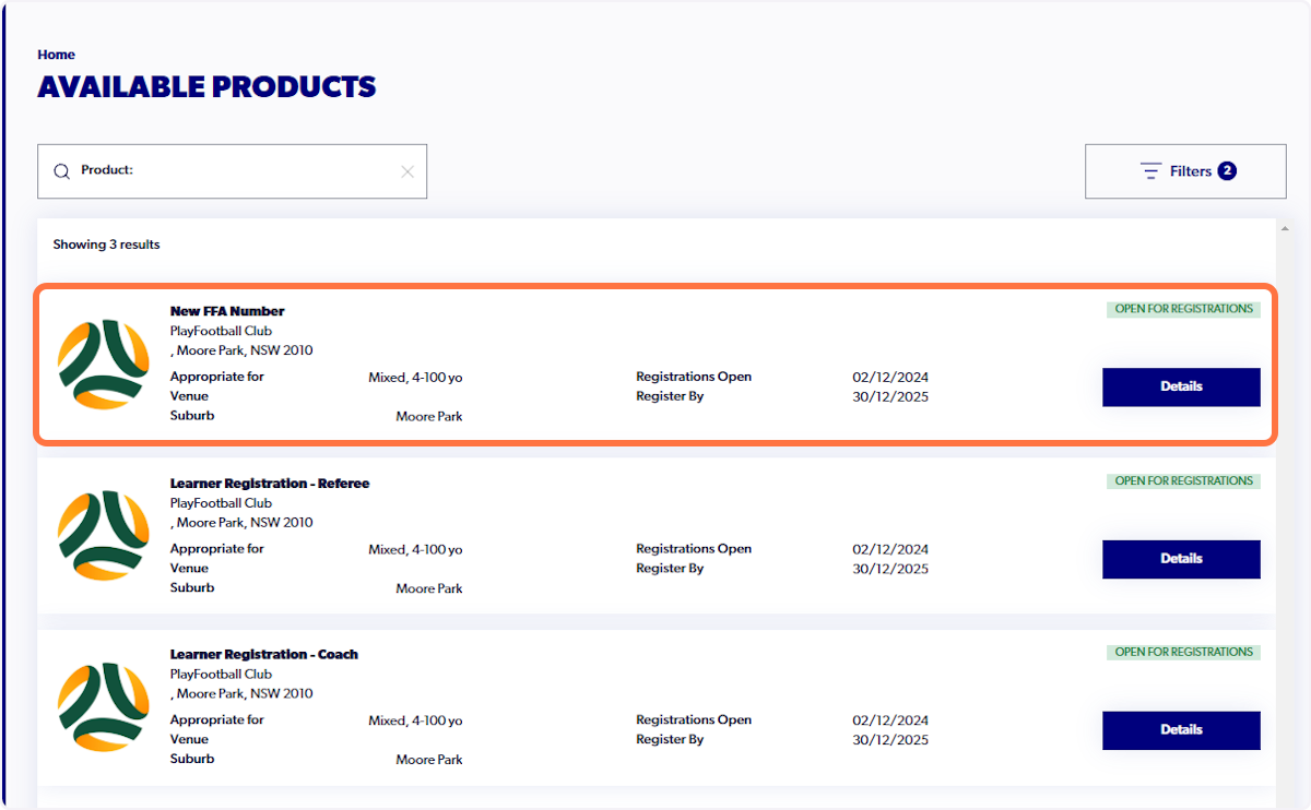 1. Go to playfootball.com.au and Click on Re-Registering to play this season