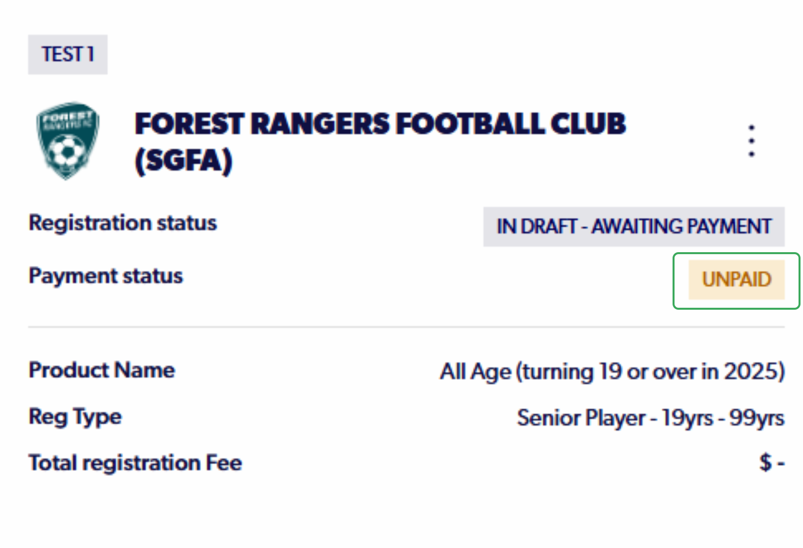 6. In order to pay for a registration, the Payment Status must be "UNPAID"