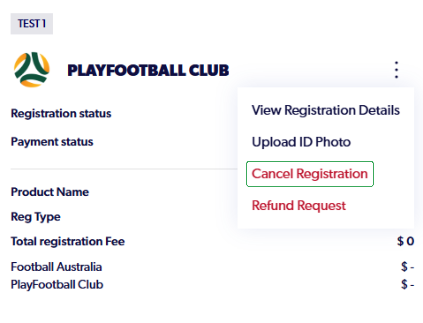 6. Click on the "Three Dots" and Select "Cancel Registration"