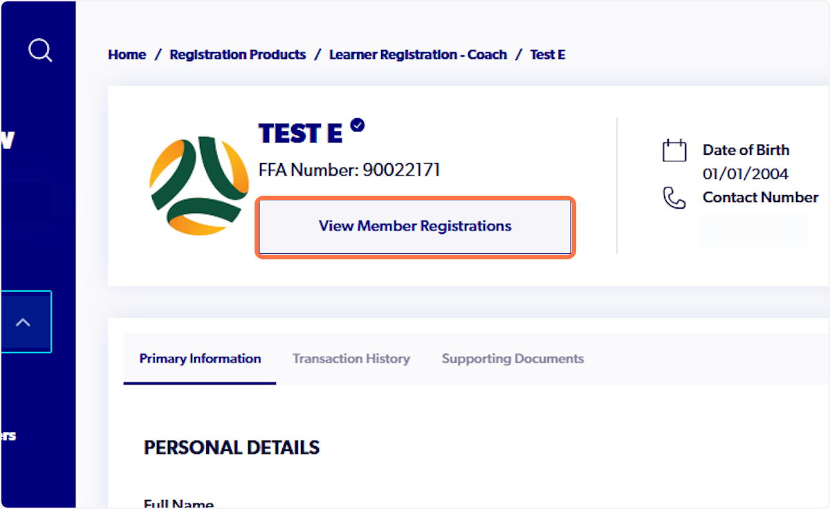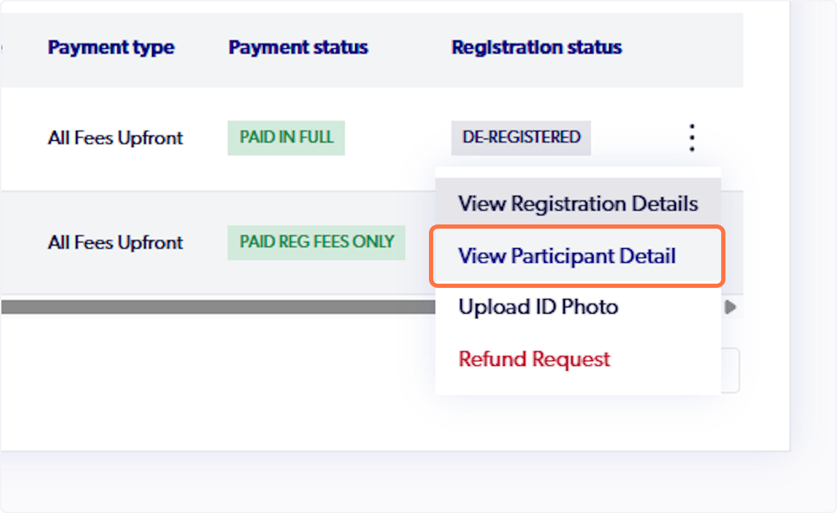 This will show you all of the participant's active registrations within the organisation you are drilled into.