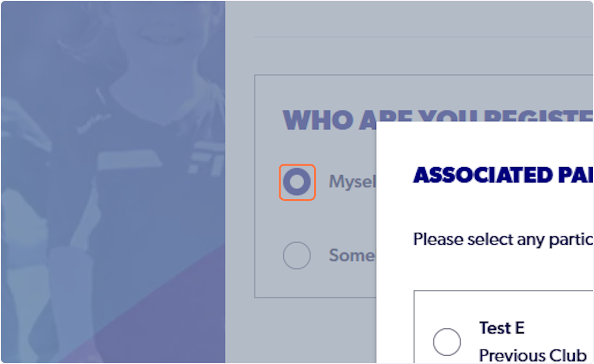 9. Select Myself or Someone Else to find the participant that you are registering