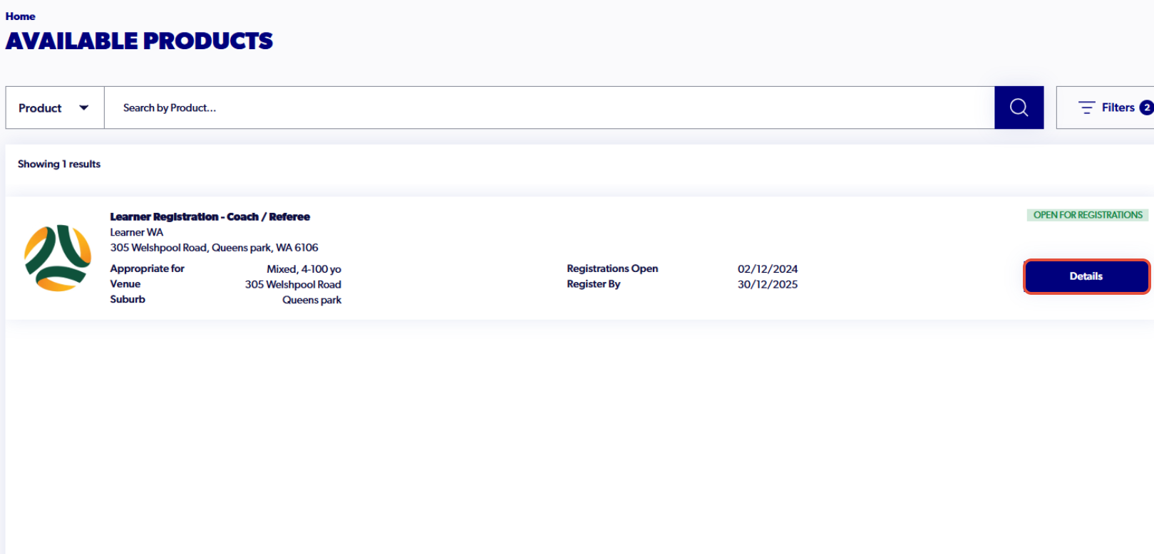 7. Find Learner Registration - Coach / Referee and click on Details