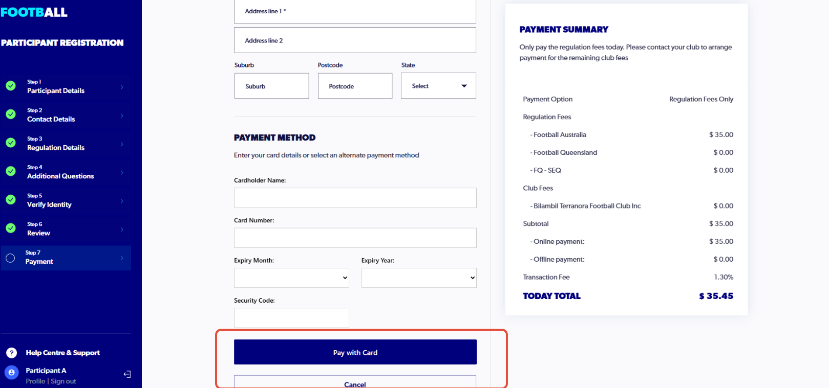 - The ‘Submit and Pay’ button is renamed to ‘Pay with Card’